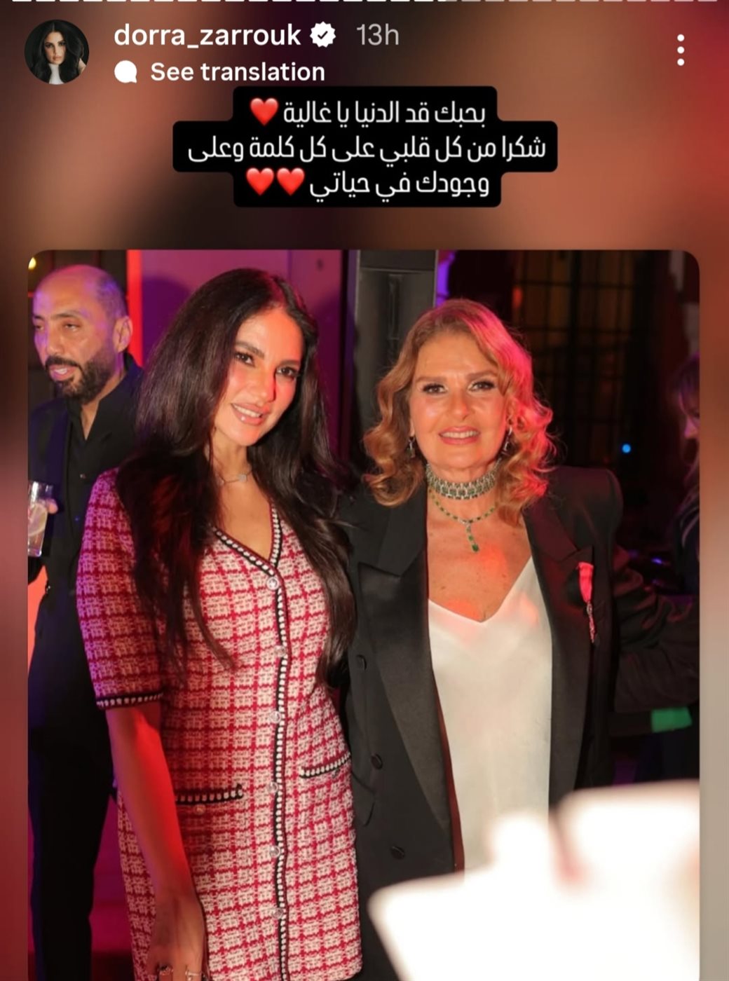 ونشرت درة صورة تجمعها بالفنانة يسرا، وعلقت عليها قائلة: "بحبك قد الدنيا يا غالية، شكرًا من كل قلبي على كل كلمة وعلى وجودك في حياتي".