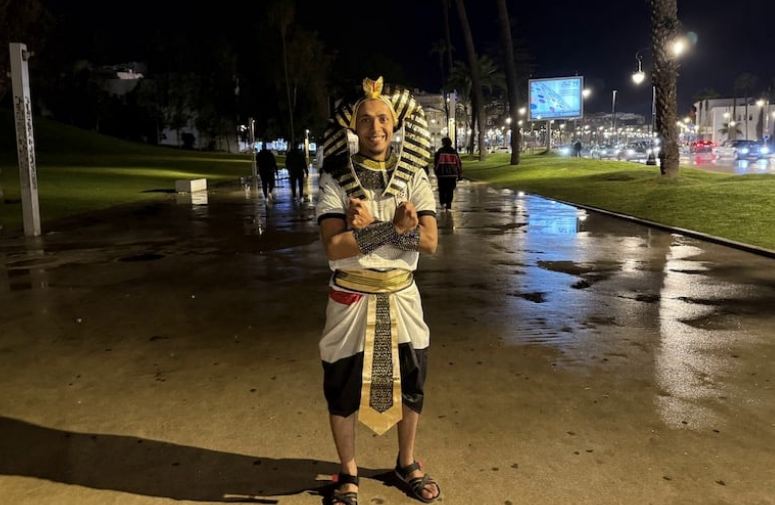 بينما كانت المدينة القديمة لطنجة تشهد تدفق المشجعين، كان محمد، الذي اشتهر في وسائل التواصل الاجتماعي بعد دعمه القوي لمنتخب مصر في كأس العرب التي أقيمت في قطر، يواصل سيره على كورنيش مالاباطا. عبر محمد، الذي يحمل علم مصر، عن سعادته الكبيرة بوجوده في المغرب.