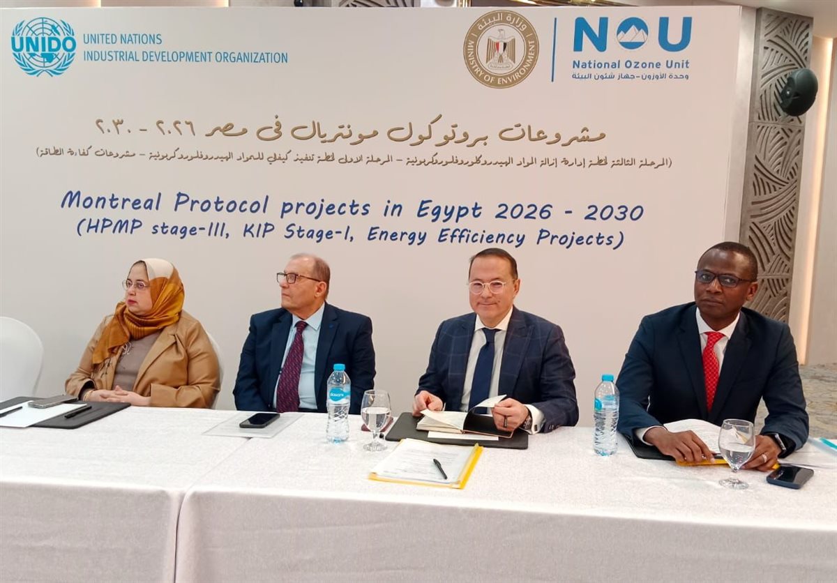 نظمت وزارة البيئة من خلال وحدة الاوزون ورشة عمل حول مشروعات بروتوكول مونتريال التي يتم تنفيذها بالتعاون مع منظمة الأمم المتحدة للتنمية الصناعية، وذلك لتسليط الضوء على أهم المشروعات المستقبلية خلال المدة من 2026- 2030، بحضور السيد باتريك جيلابار الممثل المقيم لمنظمة اليونيدو فى القاهرة، السيد ألويس مهلانغا مدير قسم ابتكار المناخ وبروتوكول مونتريال ،السيد يونروي تشو مسؤول التنمية الصناعية في اليونيدو، والأستاذة سها طاهر رئيس الادارة المركزية للتعاون والعلاقات الدولية والدكتور عزت لويس رئيس الوحدة الوطنية للأوزون، السيد أمير نخلة المنسق الوطنى للمرحلة الثانية من برنامج إدارة الأداء البيئي KIP-EE)، و لفيف من رؤساء وممثلى الهيئات الحكومية والشركات الوطنية و الخبراء وممثلي منظمات المجتمع المدني.