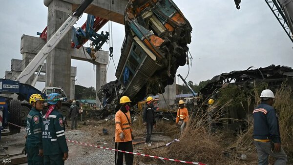 الرافعة القاتلة تسحق قطار الركاب وتفحم جثث 32 ضحية في تايلاند