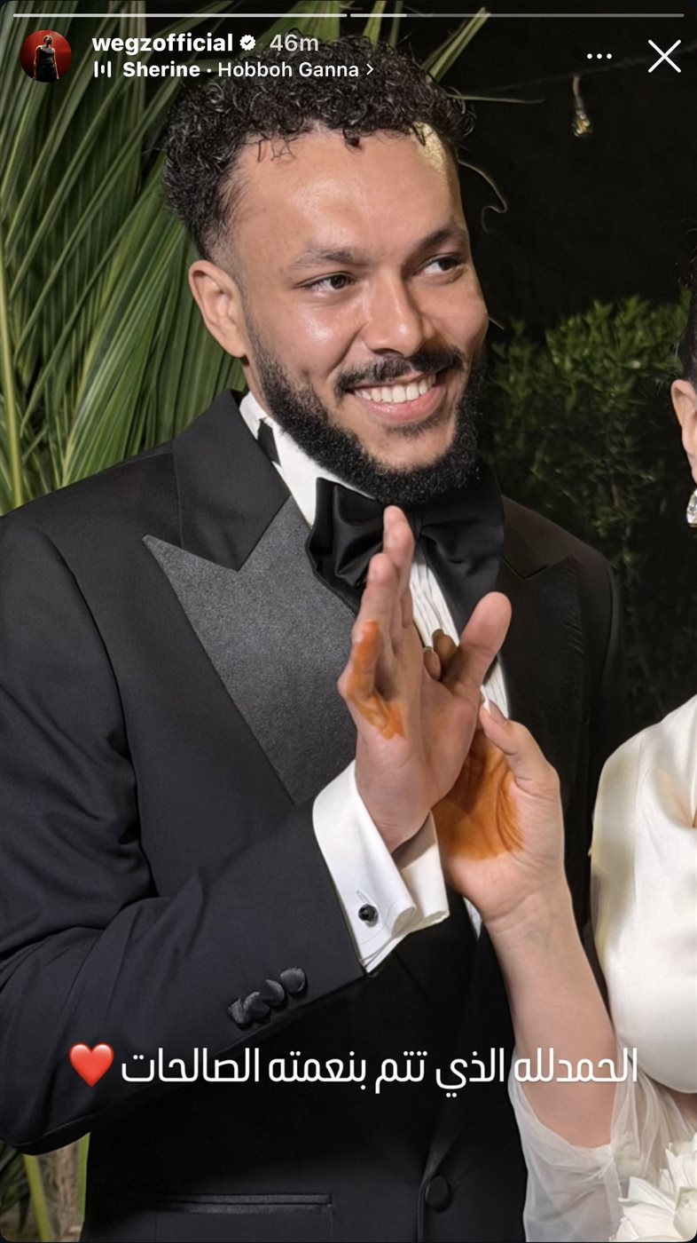نشر ويجز صورته مرتديًا بدلة كلاسيك باللون الأسود وهو يرفع إصبعه بعد ختم عقد القران في إشارة منه لإعلان زواجه، على أغنية شيرين عبد الوهاب “حبه جنة”.