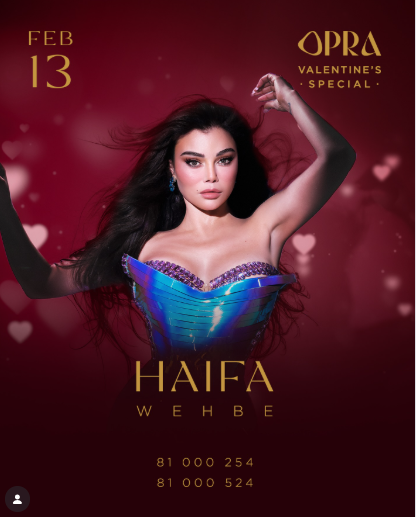 تستعد الفنانة هيفاء وهبي لإحياء حفل غنائي ساهر في العاصمة اللبنانية بيروت، يوم 13 فبراير المقبل، وذلك ضمن سلسلة حفلات عيد الحب.