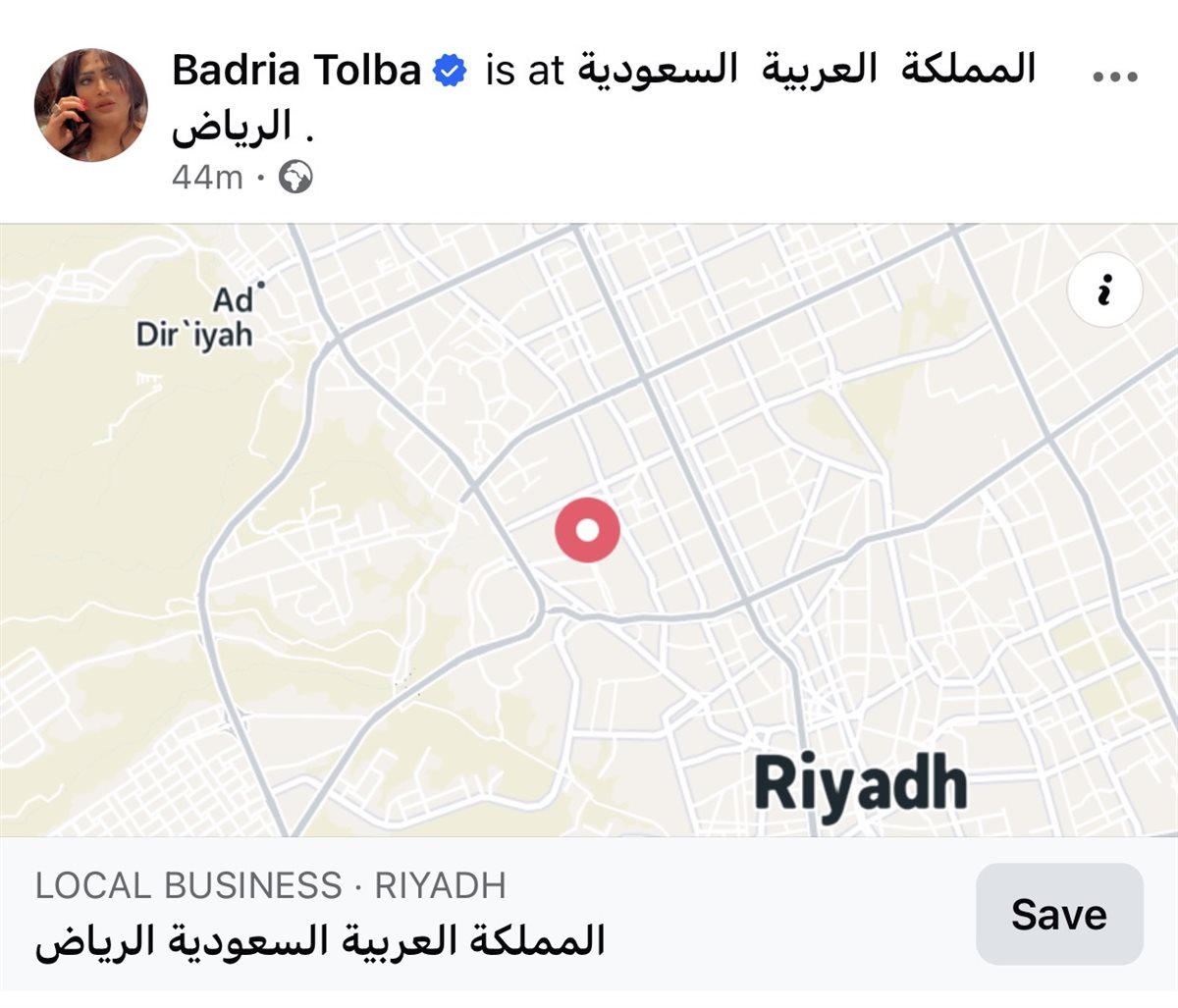 أعلنت الفنانة بدرية طلبة عن تواجدها حاليًا في المملكة العربية السعودية، وذلك من خلال منشور على حسابها الرسمي بموقع فيسبوك، كشفت فيه عن وصولها إلى مدينة الرياض دون الإفصاح عن تفاصيل إضافية تتعلق بأسباب الزيارة.