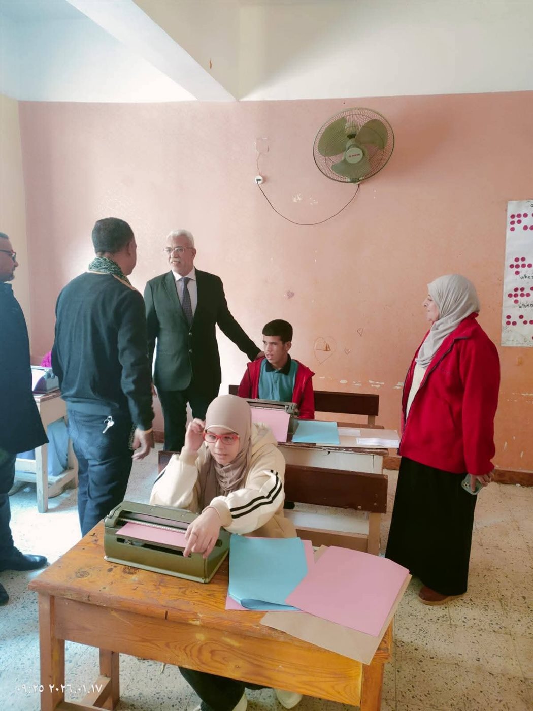 واطمأن وكيل  الوزارة خلال تفقده لجنة مدرسة صفية زغلول الإعدادية بنات ولجنة مدرسة النور للمكفوفين  التابعين لإدارة شمال التعليمية على سير امتحان اللغه العربية.
