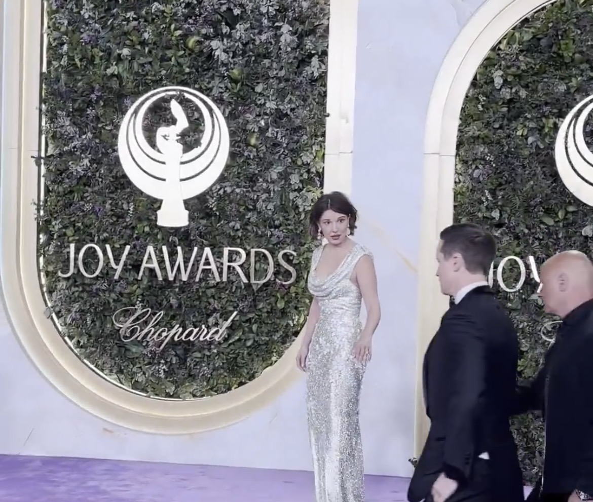 وصلت النجمة الشابة ميلي بوبي براون إلى السجادة البنفسجية لحفل JOY Awards المقام حالياً في العاصمة السعودية الرياض، متألقة بإطلالة جذابة لافتة للأنظار.