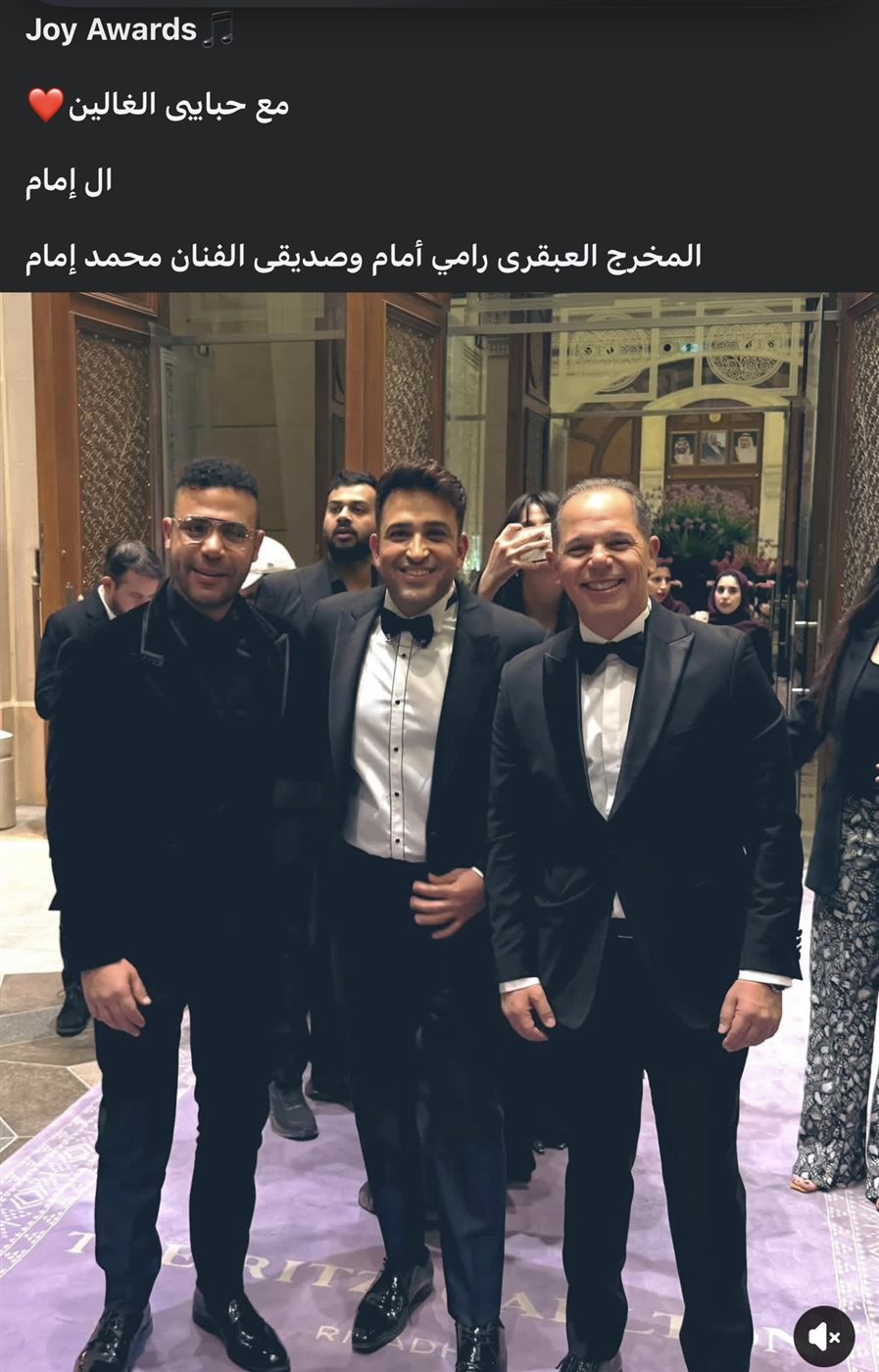 Joy Awards .. مع حبايبى الغالين ال إمام .. المخرج العبقرى رامي أمام وصديقى الفنان محمد إمام”.
