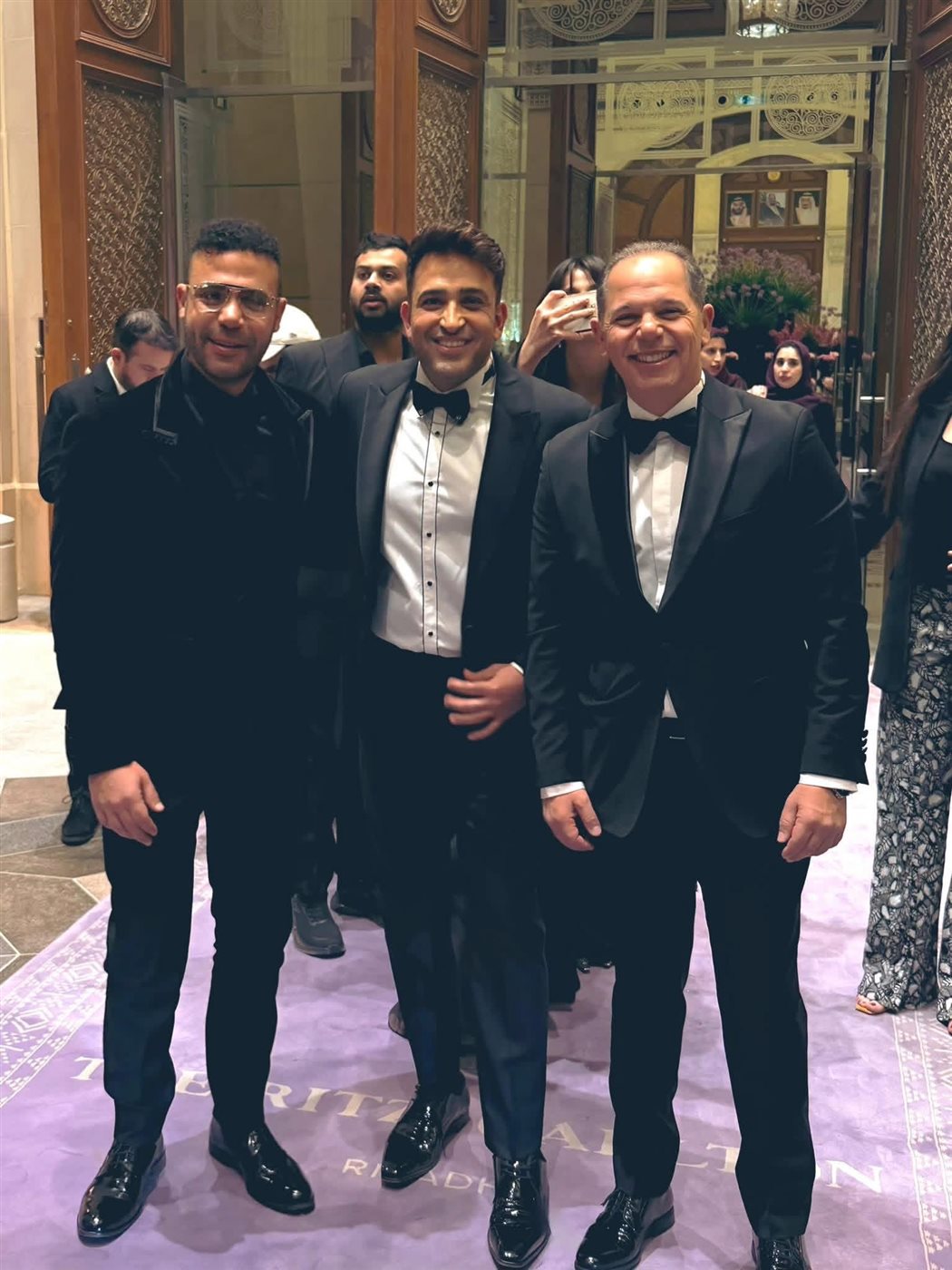 وفي السياق ذاته، نشر الشاعر تامر حسين صورة من الحفل وهو يتوسطهما وأرفقها بتعليق :