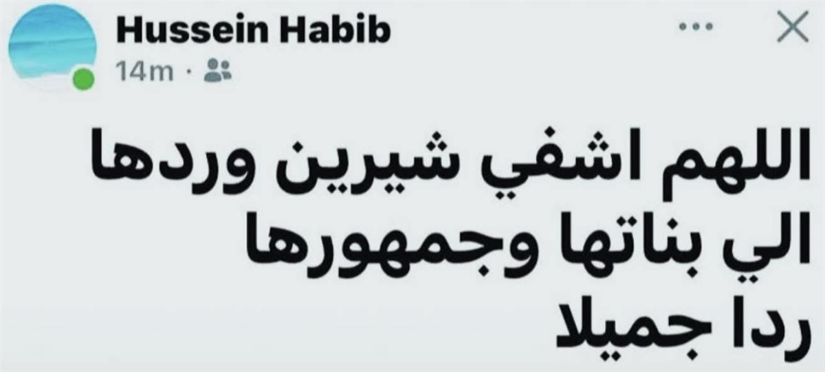كتب والد حسام حبيب: “اللهم اشفي شيرين وردها إلى بناتها وجمهورها ردًا جميلًا”، متجاهلًا نجله رغم الانتقادات والهجوم الذي يتعرض له مؤخرًا بسبب ما يحدث لها في أزمتها الأخيرة.