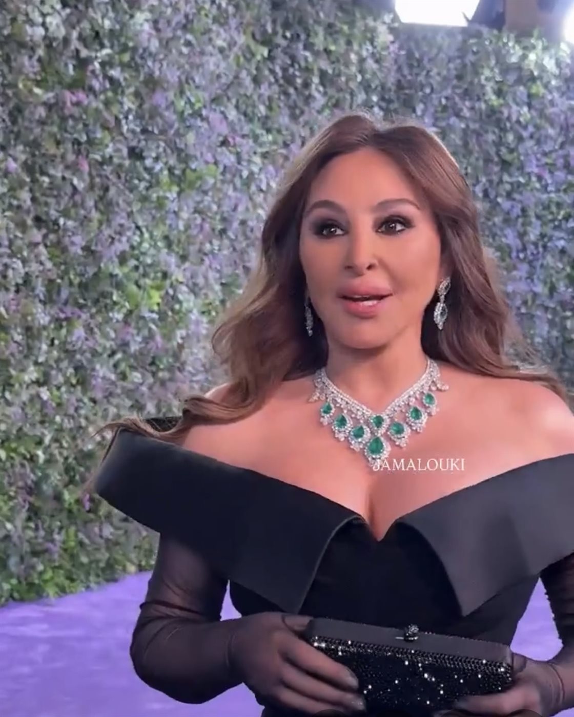 ولحظة وصولها، لاقت إليسا ترحيبًا واسعًا من الجمهور والمصورين، الذين التقطوا لها صورًا على السجادة البنفسجية قبل انطلاق الحفل. وأعربت النجمة اللبنانية عن سعادتها بالمشاركة في الحفل، مؤكدة أن الأجواء في الرياض رائعة وأن السجادة البنفسجية أضافت طابعًا ملكيًا ومميزًا للحدث، وتداول مواقع التواصل الاجتماعي مما حازت على إعجاب الجمهور ولقبوها بـ أيقونة الفن والجمال.
