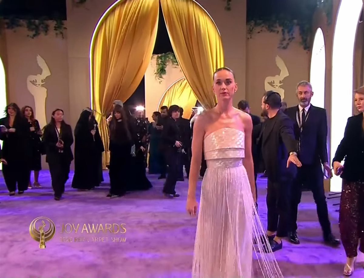وصلت النجمة العالمية كيتي بيري إلى السجادة البنفسجية لحفل جوائز JOY Awards في العاصمة السعودية الرياض، متألقة بفستان أنيق من مجموعة المصممة السعودية وعد العقيلي لربيع 2026، التي عُرضت مؤخراً في أسبوع الأزياء بالرياض.