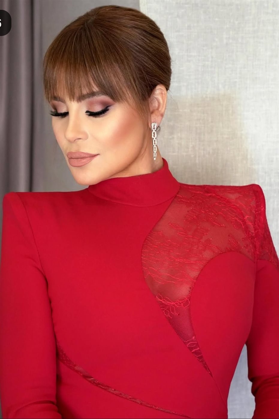 ومن الناحية الجمالية، اعتمدت تسريحة شعر جذابة، ووضعت مكياجًا ناعمًا مرتكزًا على الألوان الترابية، مع تحديد عينيها بالكحل والماسكارا، واعتماد لون الكشمير للشفاه.