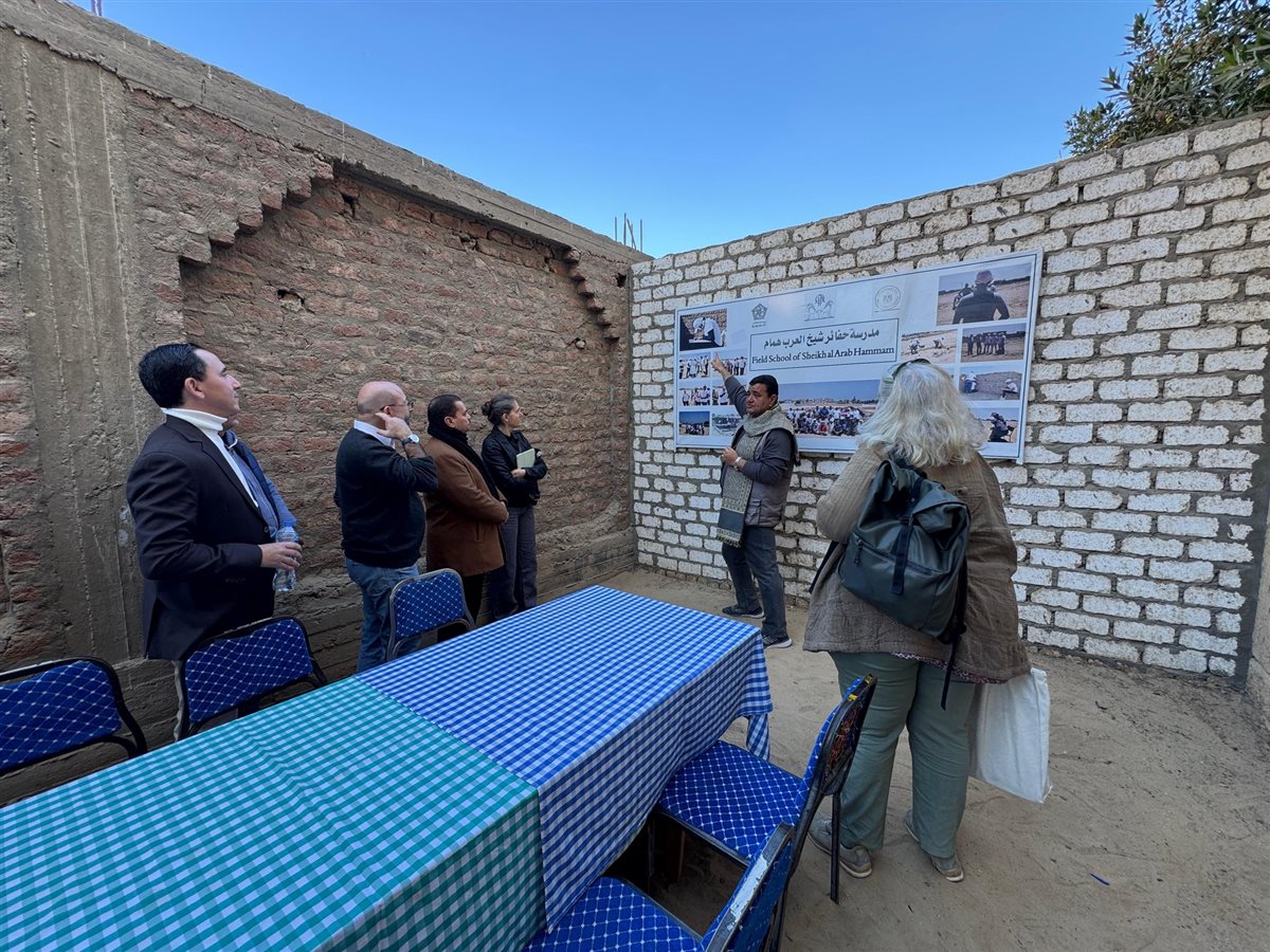حيث قام الدكتور أحمد الشوكي بشرح وتقديم أعمال البعثة في موسمها الخامس هذا العام للزائرين. كما عرض برنامج التدريب الميداني في مجال الآثار الذي تقدمه البعثة لمجموعة من ستة مفتشين ومرممين من قطاع مصرالعليا للآثار الإسلامية والقبطية، إلى جانب طلاب الماجستير والدكتوراه من جامعة عين شمس وجامعات أخرى.