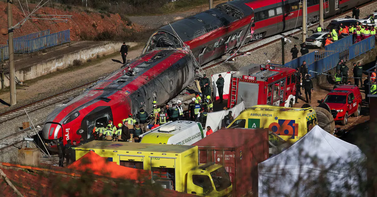 استيقظت دولة إسبانيا على فاجعة وطنية كبرى بعد ارتفاع حصيلة قتلى تصادم قطارين فائق السرعة ببلدة أداموز إلى 39 قتيلا وعشرات الجرحى الذين يصارعون الموت داخل غرف العناية المركزة، ووقعت الكارثة عندما خرج قطار شركة "إيريو" القادم من مالقة عن مساره بشكل مفاجئ ليخترق السكة المجاورة ويصدم قطار شركة "رينفي" المتجه إلى هويلفا بقوة تدميرية هائلة.