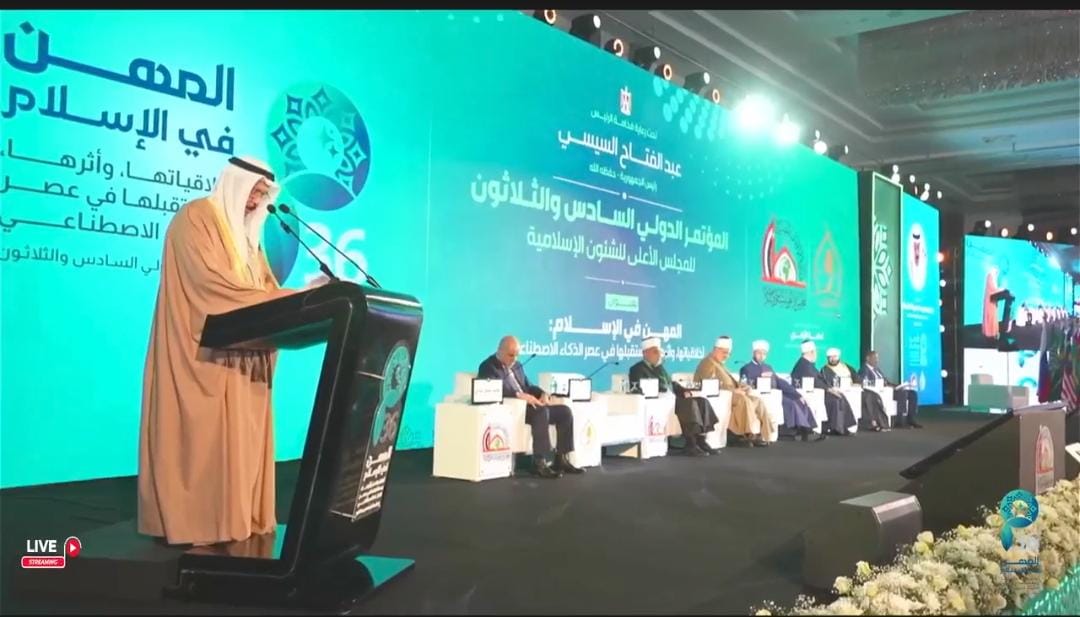 جاء ذلك في كلمته خلال المؤتمر الدولي السادس والثلاثين للمجلس الأعلى للشئون الإسلامية، الذي عُقد بالقاهرة تحت عنوان: «المهن في الإسلام: أخلاقياتها، وأثرها، ومستقبلها في عصر الذكاء الاصطناعي»، وبرعاية الرئيس عبد الفتاح السيسي، رئيس الجمهورية، وبمشاركة نخبة من العلماء والمسئولين من مختلف دول العالم.