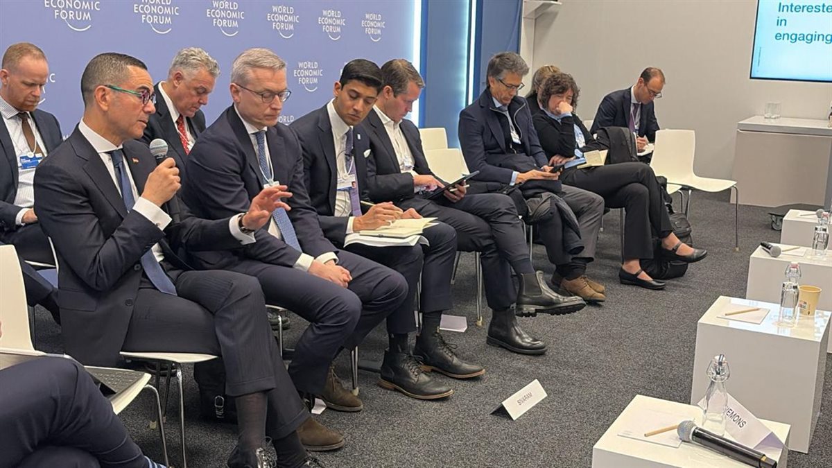 في إطار مشاركته في منتدي دافوس بسويسرا، شارك المهندس حسن الخطيب، وزير الاستثمار والتجارة الخارجية بجلسة نقاشية تحت عنوان "البنية التحتية الذكية لتعزيز التنافسية"، ادارها فارون سيفارام، المؤسس والرئيس التنفيذي لشركة Emerald AI، واستعرضت أفضل الممارسات في تطوير البنية التحتية الذكية ودورها في تعزيز القدرة التنافسية الاقتصادية، بالإضافة إلى بحث أطر السياسات والتعاون الاستثماري اللازم لتسريع الاستثمارات في هذا المجال.
