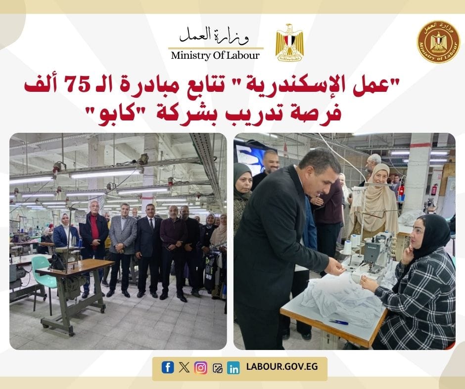 "عمل الإسكندرية" تتابع تنفيذ مبادرة الـ 75 ألف فرصة تدريب بشركة "كابو"
