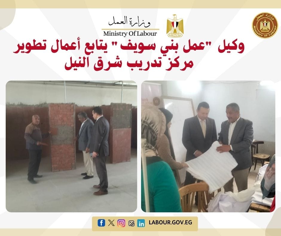وكيل "عمل بني سويف" يتابع أعمال تطوير مركز تدريب شرق النيل