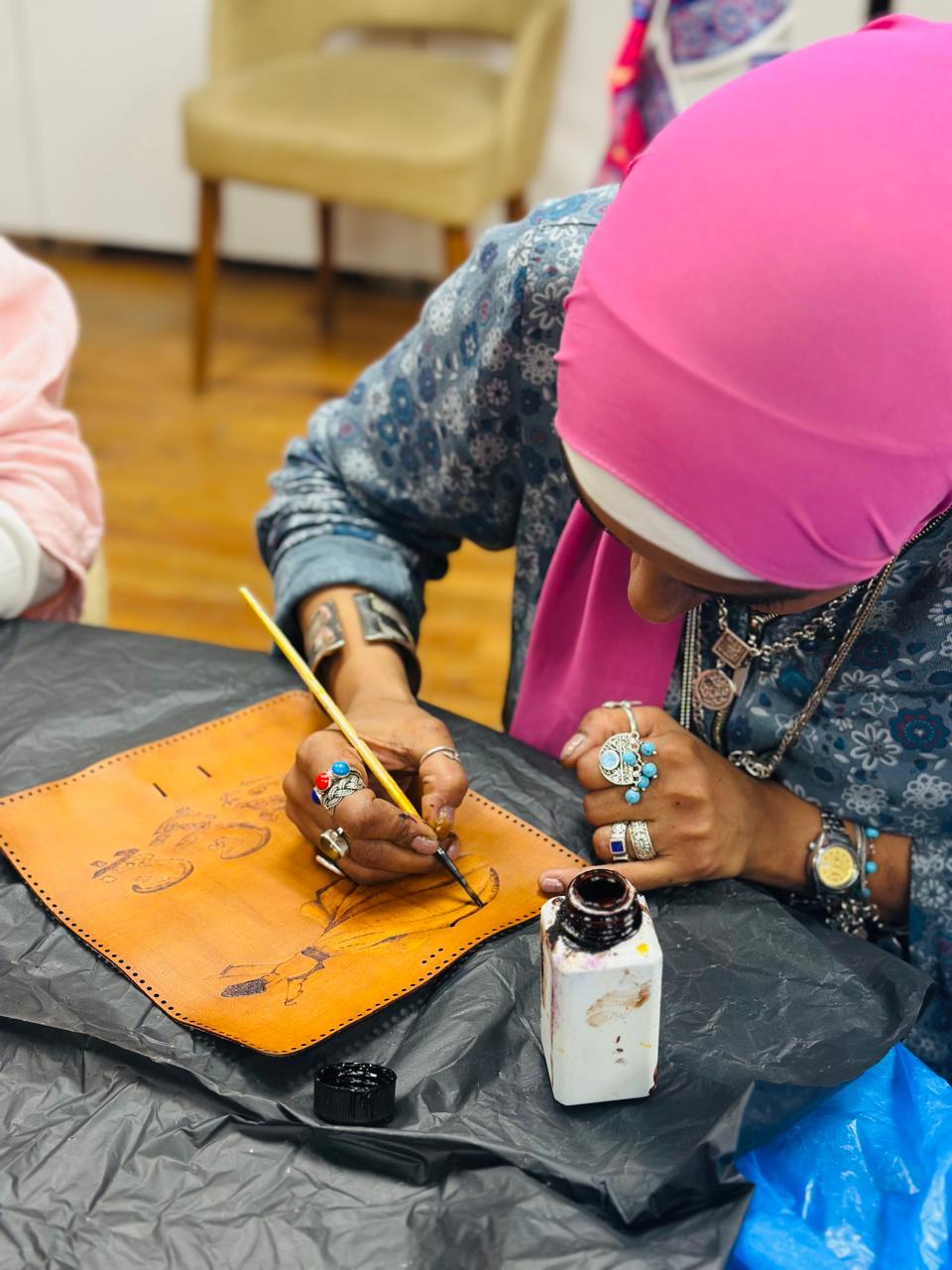 وبين نقوشات مستوحاة من الزخارف الإسلامية وتصميمات المانديلا وتطريزات الإيتامين، لا تستثنى آية من قائمتها أصعب التطريزات في لمسة أخيرة تضيفها على الحقيبة يسبقها رسم المنتج على الورق وإعداد "باترون" منه على الجلد ثم القص والتخريم ولضم القطع سويا كأحجية لا يعرف أسرارها سواها.