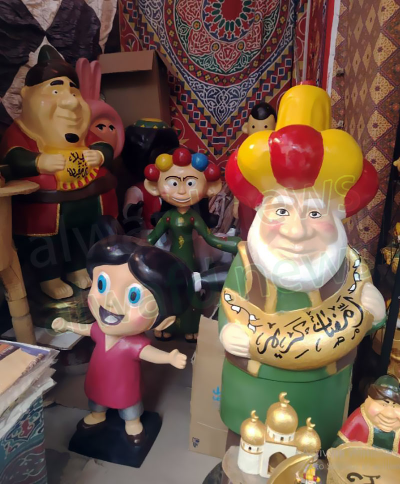 "وأكمل أنه يمكن تصنيع الفوانيس من أدوات مختلفة مثل الصفيح المطلي بالنحاس، أو الصفيح الأصفر، أو الصفيح المحفور بالليزر، أو الحديد الخفيف، أو أقمشة الخيامية، أو الأكريليك المزين بالزيت، بالإضافة إلى مجسمات كرتون فوازير رمضان الشهيرة مثل بوجي وطمطم وبسنت ودياسطي.