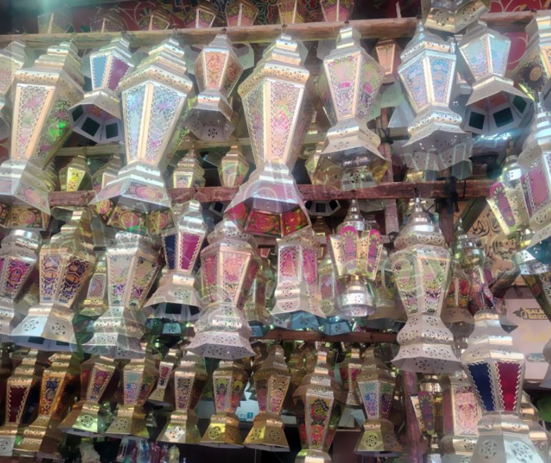 وأصبح السوق ساحة واسعة لعرض كافة أنواع وأشكال وأحجام فوانيس رمضان، بداية من الفانوس الصاج وصولًا إلى أحدث صيحات فوانيس رمضان، وهو الفانوس الزيت.