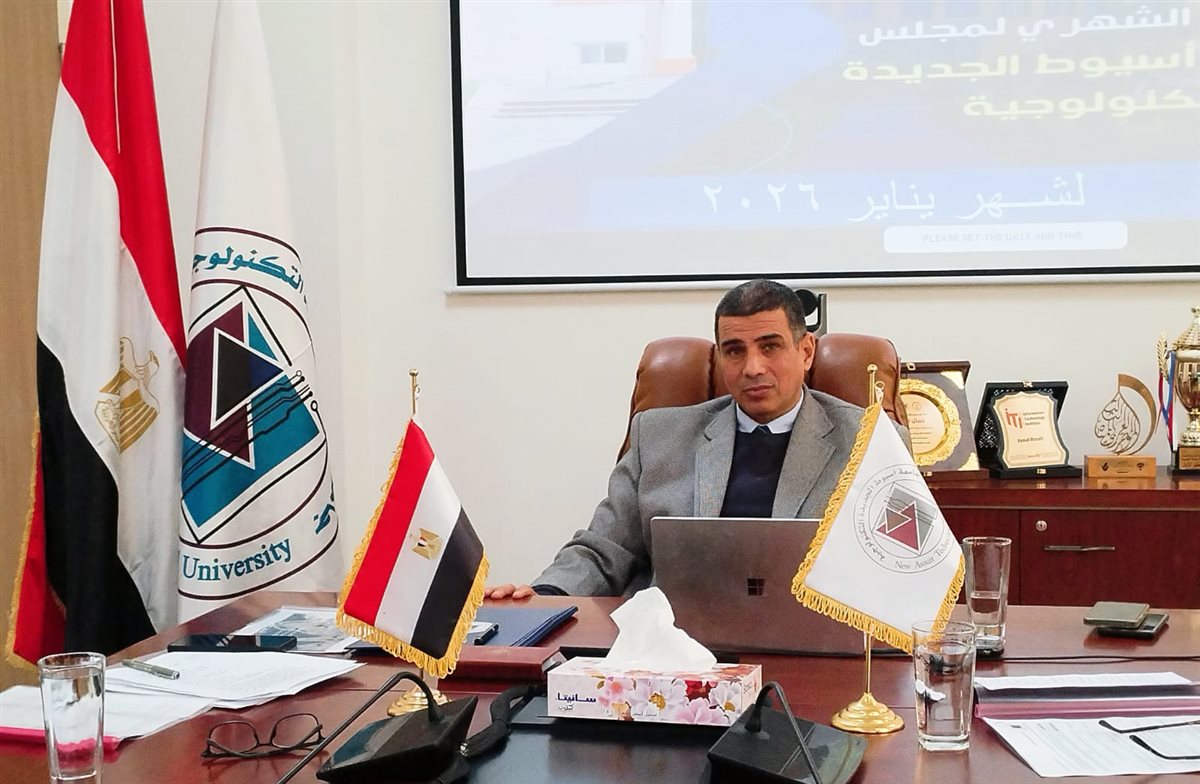 عقد مجلس جامعة أسيوط الجديدة التكنولوجية، برئاسة الدكتور جمال تاج عبدالجابر رئيس الجامعة؛ إجتماعه الدوري لشهر يناير 2026 بحضور الدكتور علي محمد يوسف نائب رئيس الجامعة لشئون التعليم والطلاب، والدكتور ولاء محمود الشريف عميد كلية العلوم الصحية التطبيقية، والدكتور خليل علي خليل عميد كلية تكنولوجيا الصناعة والطاقة، وجمال كمال عباس أمين عام الجامعة، وجهاد جمال أمين المجلس.