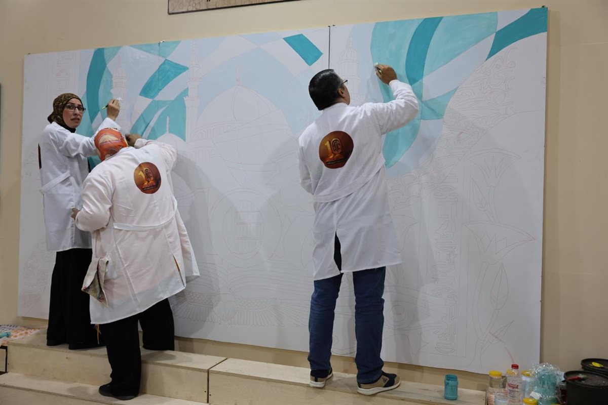 يشهد جناح الأزهر الشريف بمعرض القاهرة الدولي للكتاب انطلاق العمل لأول مرة في جدارية فنية تحمل الطراز الإسلامي، تبدأ مراحل تنفيذها مع أول أيام المعرض، وتكتمل مع ختام فعالياته، في مشهد حيّ يجسّد تلاقي الفن بالهوية الإسلامية، ويقوم على تنفيذها توجيه عام التربية الفنية بقطاع المعاهد الأزهرية، بمشاركة فناني الزخرفة من عدد من المناطق الأزهرية.
