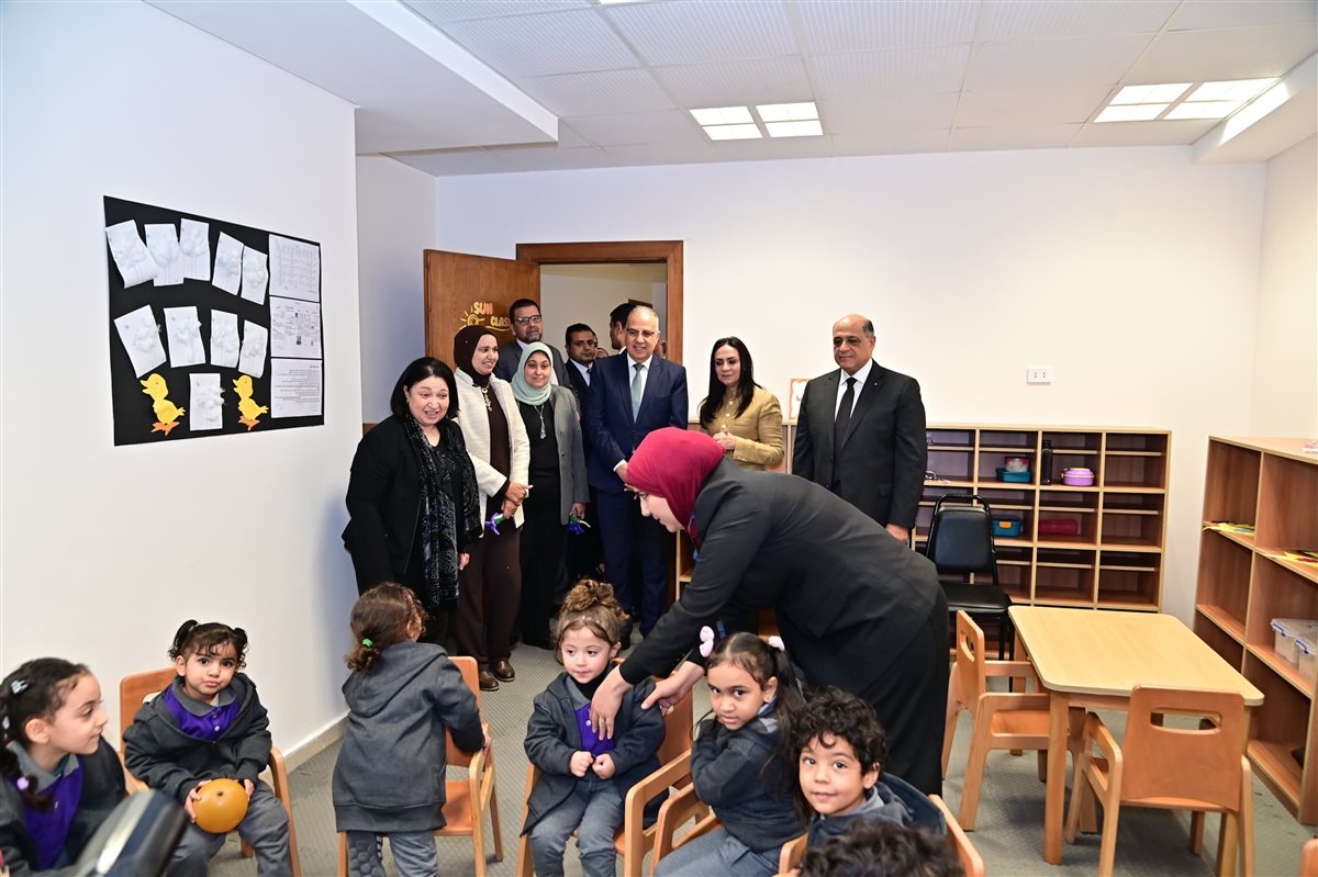 وحرص الوزيران على تفقد أروقة المركز، والإطلاع على شرح تفصيلي عن المركز وأقسامه وأهدافه والرؤية المستقبلية؛ حيث يضم المركز ٣ فصول لاستقبال الأطفال من سن ٤ شهور وحتى ٦ سنوات، وقد تم تأسيس المركز وفقًا للمعايير والمقاييس التي تتفق مع النموذج الياباني .