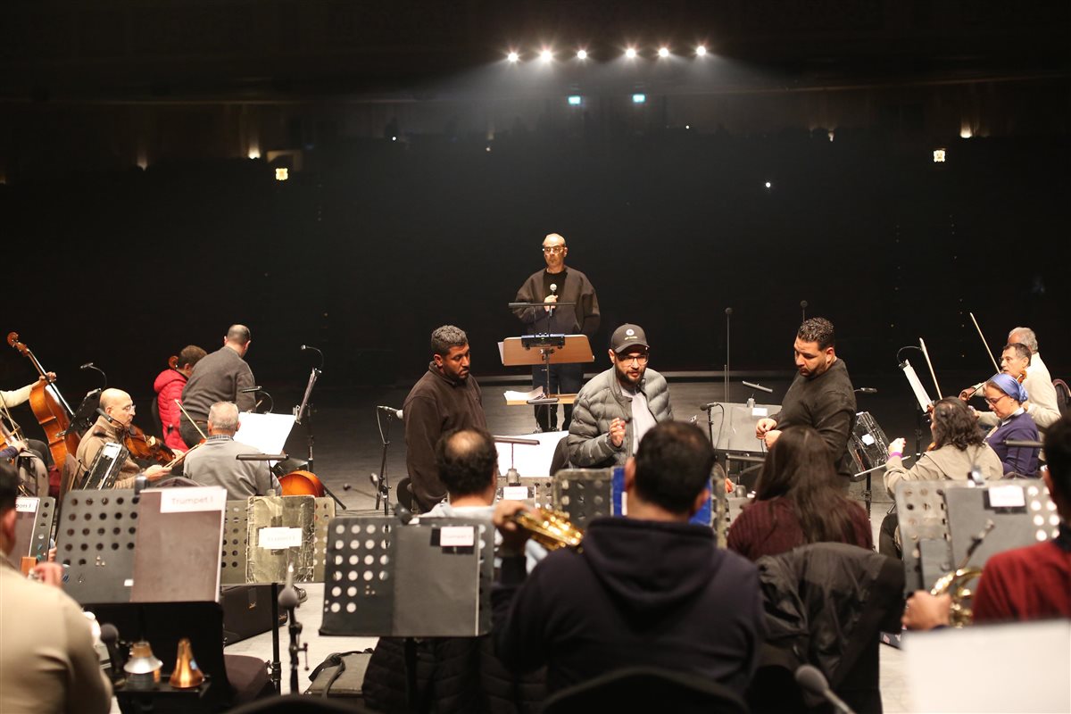 وشهدت البروفة حضور المايسترو العالمي نادر عباسي، الذي قاد الأوركسترا والجوقة الفيلهارمونية المتحدة، حيث جرى العمل على ضبط الإيقاع الموسيقي والتكوينات السمعية، بما يضمن خروج العرض في صورته المتكاملة التي تليق بالمناسبة الثقافية الكبرى.