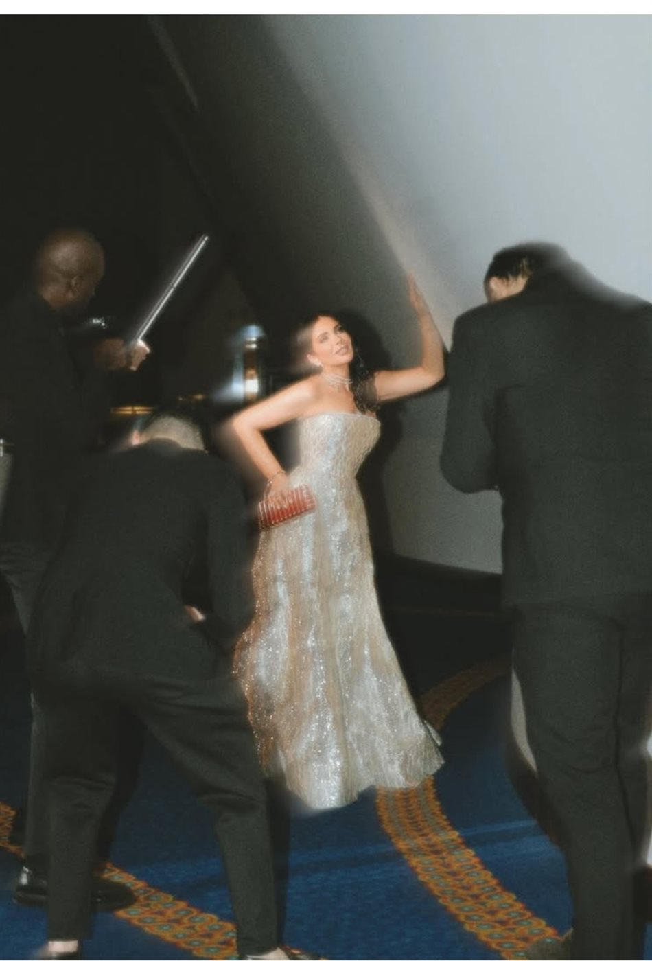وتزينت ببعض قطع المجوهرات المرصعه بحبيبات الألماس لتزيد من فخامة إطلالتها.
