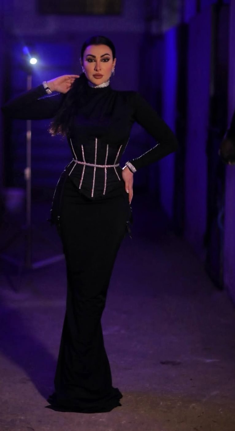 ميرهان حسين تواكب موضة الكورسية بتوقيع المخمل