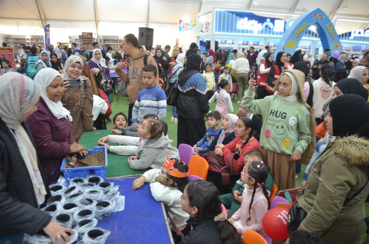 كما نفذ فريق عمل متحف الطفل بالمعرض ورشة عمل عن أهمية الزراعة في حياتنا، تضمنت شرحًا عمليًا عن زراعة البذور في أواني فخارية، مع توضيح أن الزراعة أساسية لحياة الإنسان لأنها توفر الغذاء الصحي، وتحسن البيئة، وتوفر الأكسجين، وتعزز جودة الحياة، وتقدم الاسترخاء النفسي.