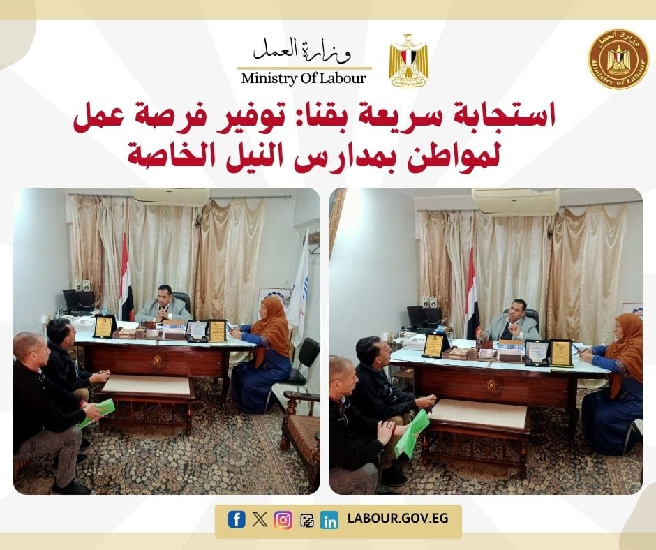 استجابة سريعة بقنا: توفير فرصة عمل لمواطن بمدارس النيل الخاصة