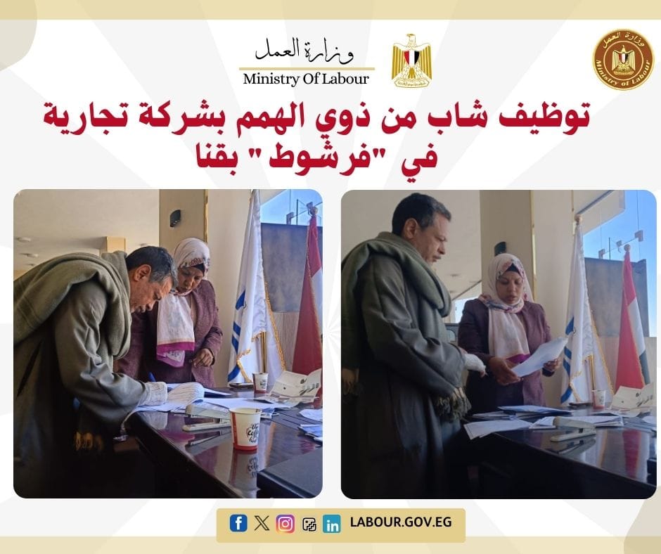 توظيف شاب من ذوي الهمم بشركة تجارية في "فرشوط" بقنا