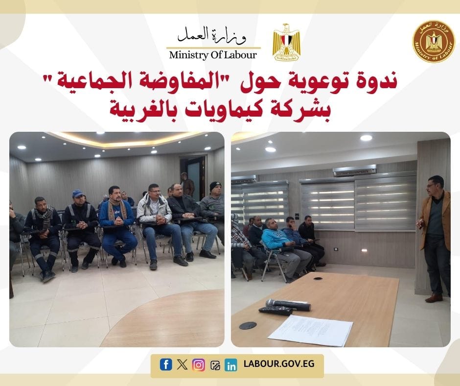 ركزت الندوة على تعريف العاملين بمفهوم المفاوضة الجماعية وأهمية الحوار الاجتماعي في تحقيق التوازن والاستقرار داخل المؤسسات الإنتاجية لزيادة الإنتاجية.