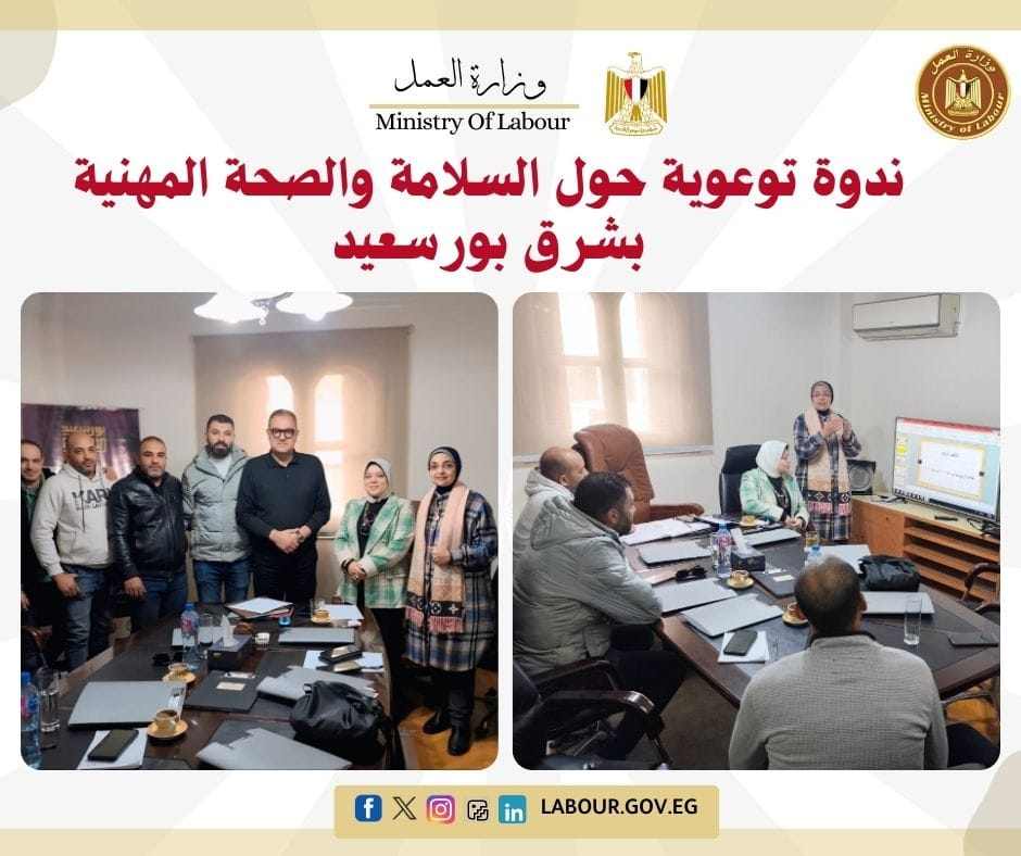 نظمت مديرية عمل بورسعيد، برئاسة إيمان مسعد، ندوة واجتماعاً للجنة السلامة المهنية بشركة "دومينيك" بشرق بورسعيد.