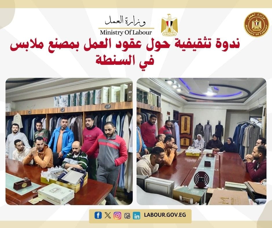 عقد مكتب عمل السنطة بالغربية ندوة بمصنع "الباز للملابس" بقرية ميت حواي.
