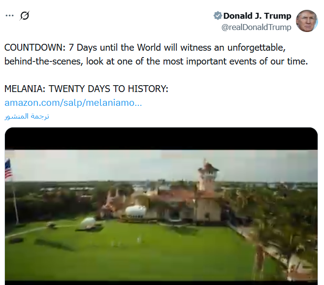 ترامب يروج لفيلم ميلانيا الجديد وكواليس الـ20 يوماً قبل الرئاسة