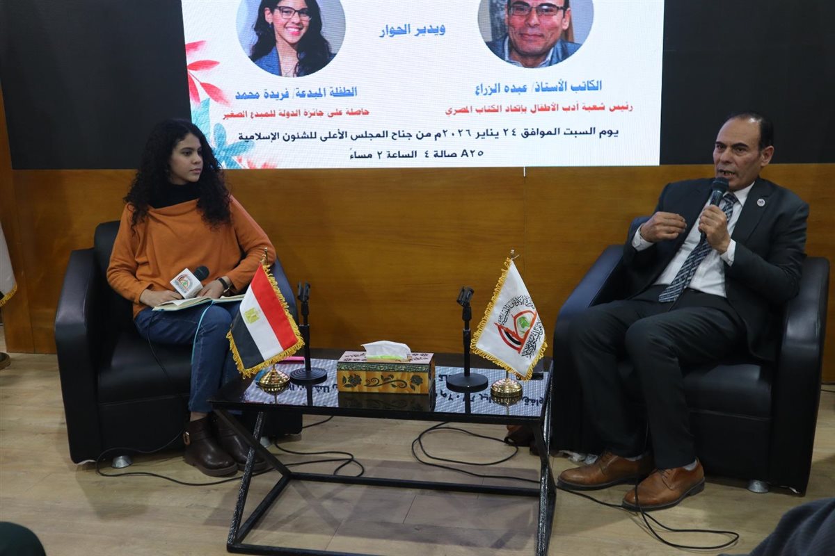 وتناولت الندوة، التي أُقيمت ضمن أنشطة جناح المجلس الأعلى للشئون الإسلامية، أهمية تنمية الوعي الثقافي والفكري لدى الأطفال، وتعزيز دور الأدب في بناء الشخصية، وتنمية الخيال والقيم الإنسانية، بما يسهم في إعداد جيل واعٍ ومبدع.
