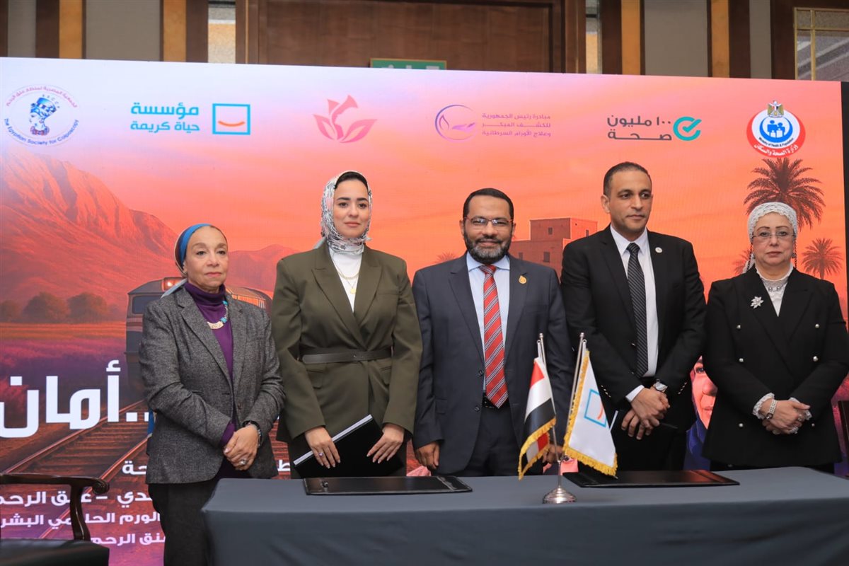 وقّعت الجمعية المصرية لمنظار عنق الرحم، أمس، بروتوكول تعاون مشترك مع مؤسسة «حياة كريمة»؛ لإطلاق برنامج شامل للفحص المبكر والكشف عن الأورام السرطانية ضمن حملة «من بدري أمان»، وذلك بالتعاون مع المبادرة الرئاسية للكشف المبكر عن الأورام السرطانية.