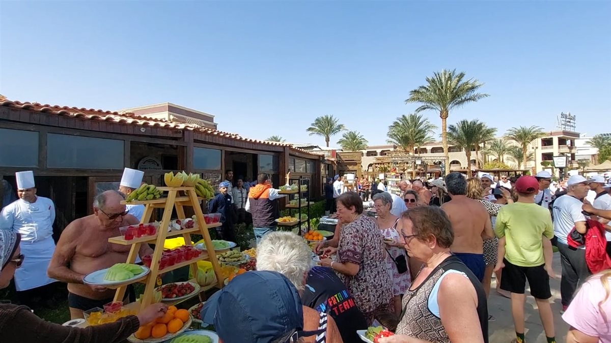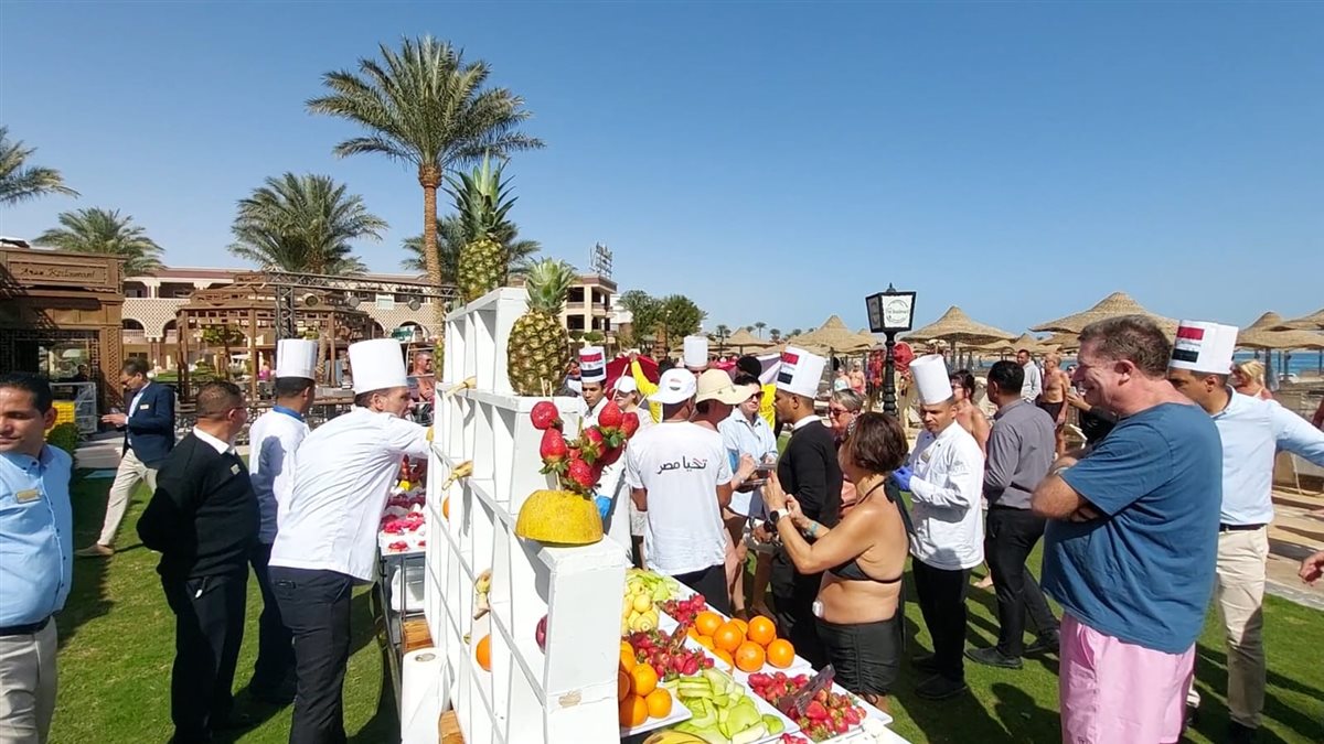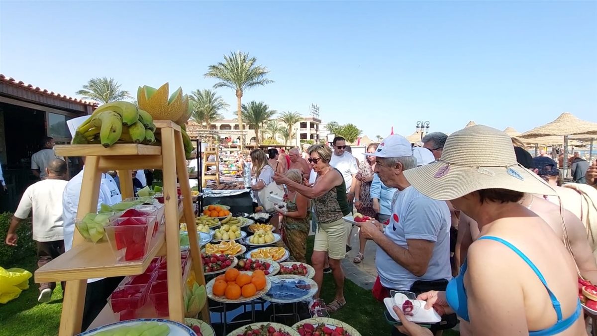 وأشار محمود أن الفنادق تقدم برامج ترفيهية للنزلاء على مدار اليوم سواء مصريين أو أجانب، وأن اليوم الأحد نظم الفندق مهرجان الفواكه ضمن البرامج الترفيهية بمشاركة عشرات السياح والمصريين مع تقديم العروض الفنية من فرق الأنيمشن الخاصة بالفندق.