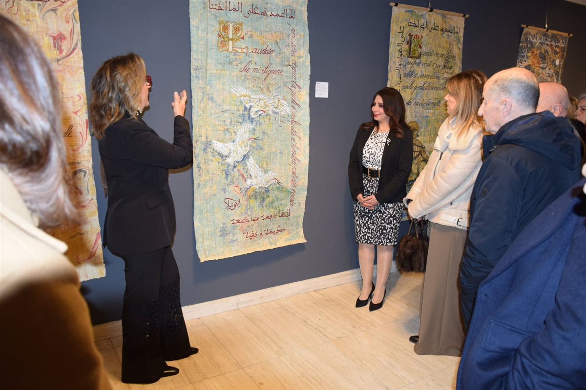 وفي هذا السياق، نظّمت الأكاديمية معرضًا فنيًا متميزًا للفنانة الإيطالية أنطونيلا ليوني، المعروفة بولعها بالحضارة المصرية، حيث قدّمت مجموعة من لوحاتها المنفذة على نبات البردي، في تجربة فنية فريدة تعانق الحضارتين المصرية والإيطالية. وقد رافقت أعمالها كلمات مختارة من الشعر المنتمي للثقافة المصرية، إلى جانب توظيف بعض آيات من القرآن الكريم، في رسالة فنية تعبّر عن التعايش والحوار بين الثقافات والأديان.