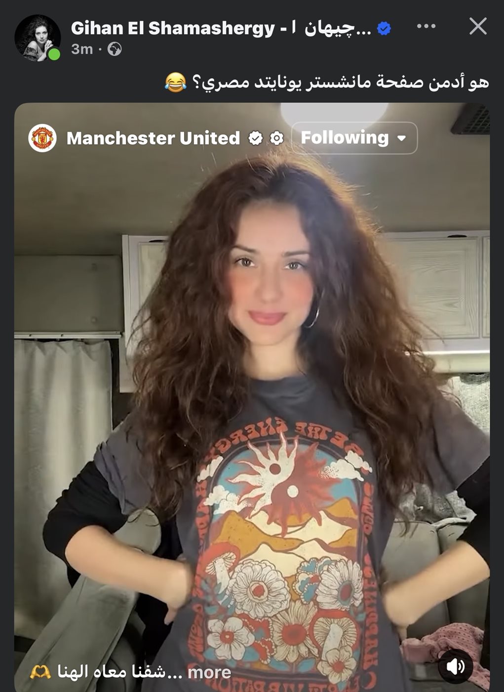 جيهان الشماشرجي بعد استعانة فريق مانشستر يونايتد بفيديو تيك توك لها: أدمن الصفحة مصري؟
