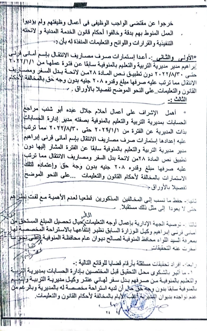 وكانت النيابة الإدارية تحقق في القضية رقم 570 لسنة 2022 المتهم فيها هانى عنتر وكيل وزارة التربية والتعليم والتعليم الفنى بمحافظة المنوفية؛ إبان شغله منصب وكيل مديرية التربية والتعليم والتعليم الفنى بمحافظة المنوفية قبل ترقيته وكيلاً للوزارة في محافظة قـــنا؛ بالحصول على مبالغ مالية في صورة بدلات سفر بدون وجه حق؛ رغم وجود استراحه له بجهة عمل في العاصمة شبين الكوم؛ وتبين من التحقيقات تغيبه عن العمل معظم أيام الأسبوع!!