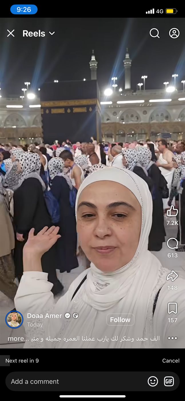 دعاء فاروق توثق رحلتها في العمرة برسالة مؤثرة لجمهورها