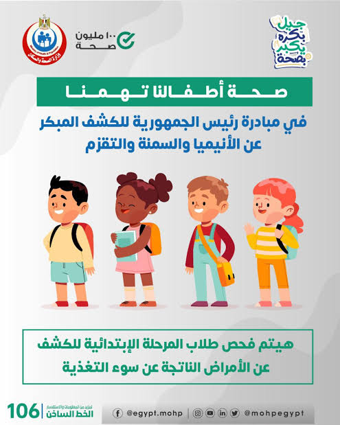 وأكدت الوزارة أن المبادرة تمثل تحولًا استراتيجيًا في السياسات الصحية الوطنية، من الاعتماد على التدخل العلاجي بعد حدوث المرض، إلى الوقاية والاكتشاف المبكر كمسار أساسي لحماية صحة الأطفال، وتعزيز قدراتهم البدنية والذهنية، وبناء أجيال أكثر قدرة على التعلم والإنتاج والمشاركة الفاعلة في المجتمع.