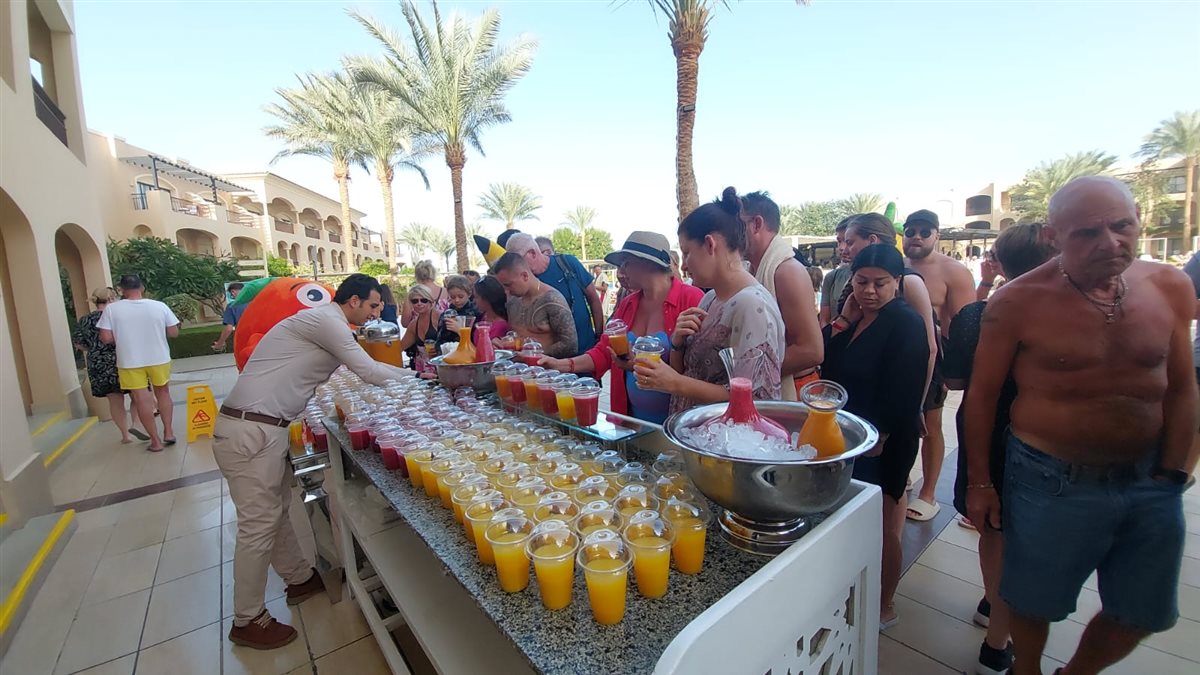 وأشار محمود أن الفنادق تقدم برامج ترفيهية للنزلاء على مدار اليوم سواء مصريين أو أجانب، وأن اليوم الأحد نظم الفندق مهرجان الفواكه ضمن البرامج الترفيهية بمشاركة عشرات السياح والمصريين مع تقديم العروض الفنية من فرق الأنيمشن الخاصة بالفندق.