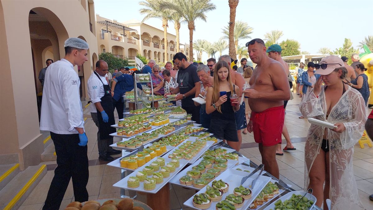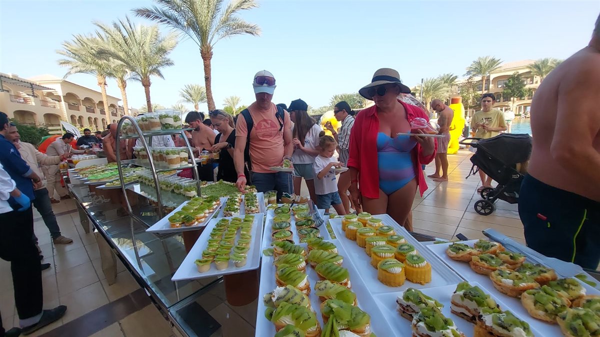 و أشار الشيف العمومي محمد عباس منظم المهرجان بأن مهرجان الكيوي جاء بمشاركة 11 شيف وباستخدام نصف طن كيوي وقطع طازجة وعصائر فريش إذ تم عمل تورت الكيوي وحلويات غربية متنوعة وعصائر باستخدام الكيوي لتنشيط السياحة في الغردقة.