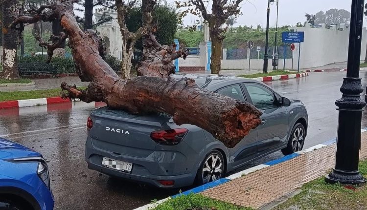 عاصفة المملكة المغربية تقتلع الأشجار وتحرك الجبال وتحطم السيارات في الشوارع