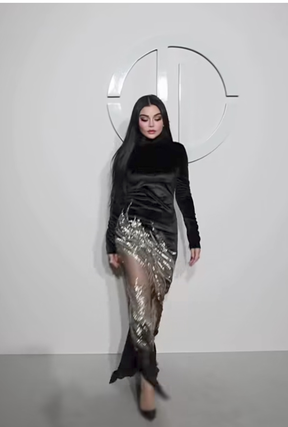 وبدت هيفاء وهبي بإطلالة ساحرة، تمزج بين نعومة المخمل وسحر التل المطرز بحبيات الخرز الذهبي من الأمام، حيث أرتدت فستان طويل مجسم، بأكمام طويلة، الفستان حمل توقيع مصمم الأزياء اللبناني طوني ورد وعكس الفستان قوامها الرشيق ووزنها المثالي بشكل جذاب.