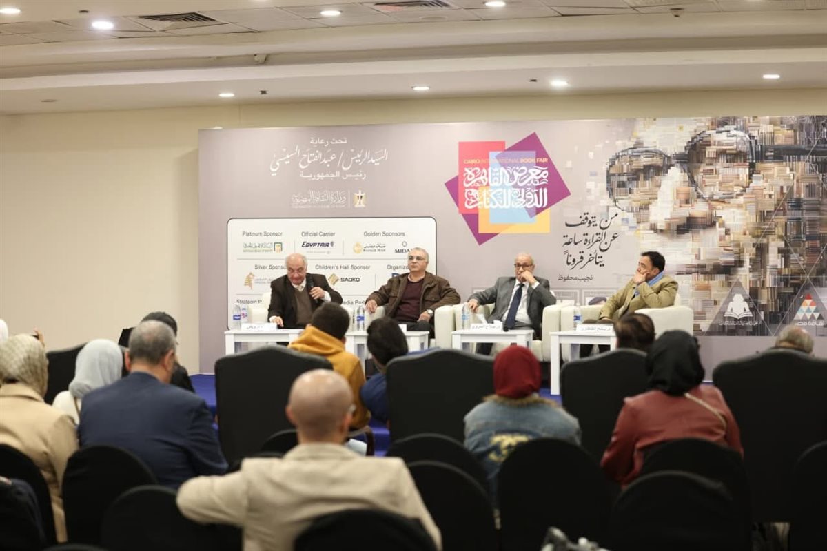 ضمن فعاليات الدورة السابعة والخمسين لمعرض القاهرة الدولي للكتاب، احتضنت القاعة الرئيسية ببلازا (1)، وفي إطار محور «شخصية المعرض: نجيب محفوظ»، ندوة فكرية حملت عنوان «قلق الوجود وأسئلة المصير.. الأبعاد الفلسفية في المشروع الروائي لنجيب محفوظ»، بمشاركة نخبة من أساتذة الفلسفة والأدب.